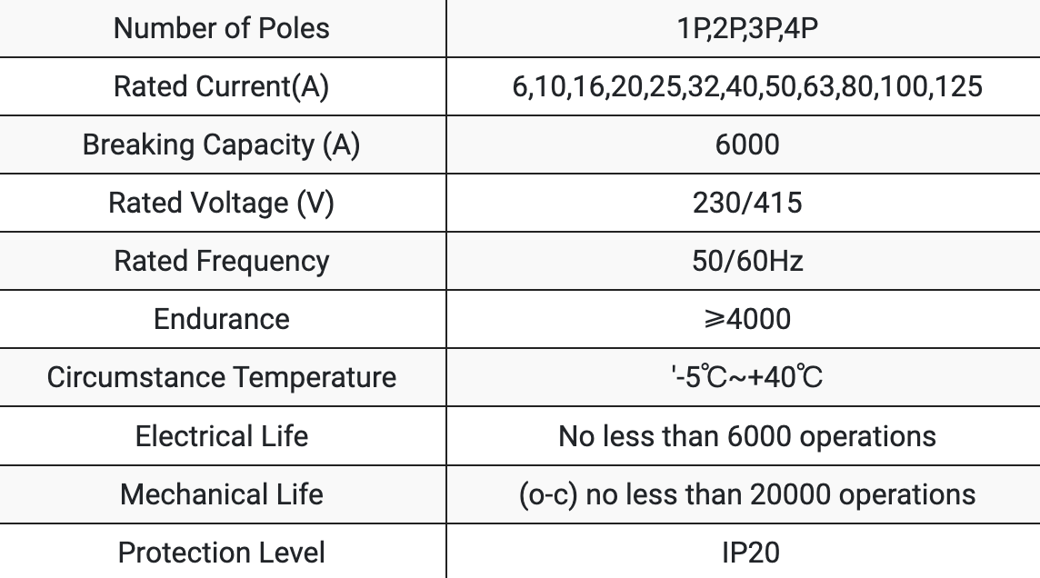 Su diseño compacto permite una fácil instalación en paneles de riel DIN estándar, mientras que su mecanismo de conmutación rápida garantiza un rápido aislamiento del circuito. El interruptor cumple con los estándares de seguridad internacionales, que ofrece un rendimiento estable en varios entornos y garantiza la seguridad del usuario.