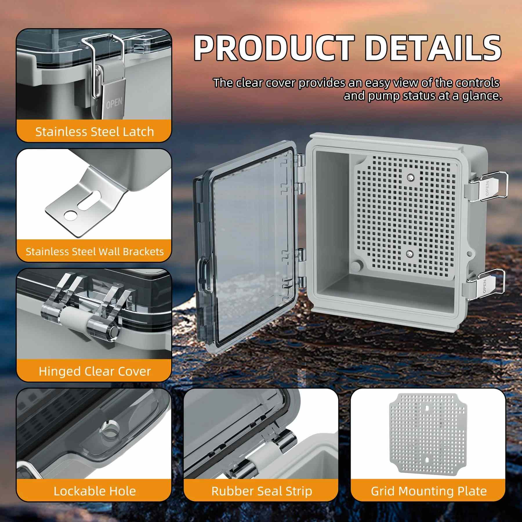 Ideal para una variedad de aplicaciones, desde fuentes de alimentación y controladores de bombas hasta dispositivos Starlink y Electrónica de bricolaje en el hogar, esta caja de unión versátil es una excelente opción para profesionales y aficionados que buscan protección confiable e instalación fácil.